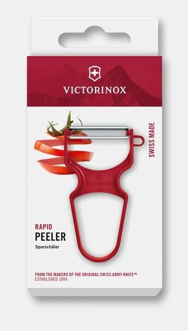 Táto škrabka spája kultovú DNA dizajnu REX s modernými materiálmi pre maximálne pohodlie pri práci v kuchyni. Ergonomická rukoväť je vyrobená z ľahkého a odolného plastu, ktorý zaručuje pevný úchop pre pravákov aj ľavákov. Ultra ostrá čepeľ so zúbkovaným ostrím si hravo poradí aj s mäkšou šupkou ovocia a zeleniny. Praktický bočný výstupok umožňuje rýchle a jednoduché odstránenie kazov na zelenine. Vďaka možnosti umývania v umývačke riadu je údržba škrabky RAPID mimoriadne jednoduchá. Je to ideálny pomocník pre každodenné varenie, vyrobený priamo vo Švajčiarsku.