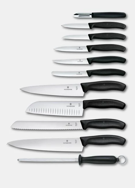 Súprava obsahuje 11 starostlivo vybraných nástrojov z radu Swiss Classic, ktoré sú navrhnuté pre maximálnu efektivitu a pohodlie pri práci. Od precízneho krájania zeleniny až po porciovanie mäsa či pečiva – tento blok obsahuje všetko, čo ambiciózny domáci kuchár potrebuje.