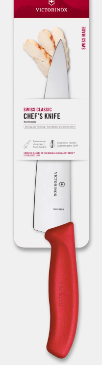 Kuchársky nôž kolekcie SwissClassic má rovnú vysokú čepeľ s hladkým ostrím na krájanie širokej škály surovín. Vďaka výške čepele sa s ním mimoriadne ľahko plátkuje. Dĺžka čepele 19 cm. V blistrovom balení.