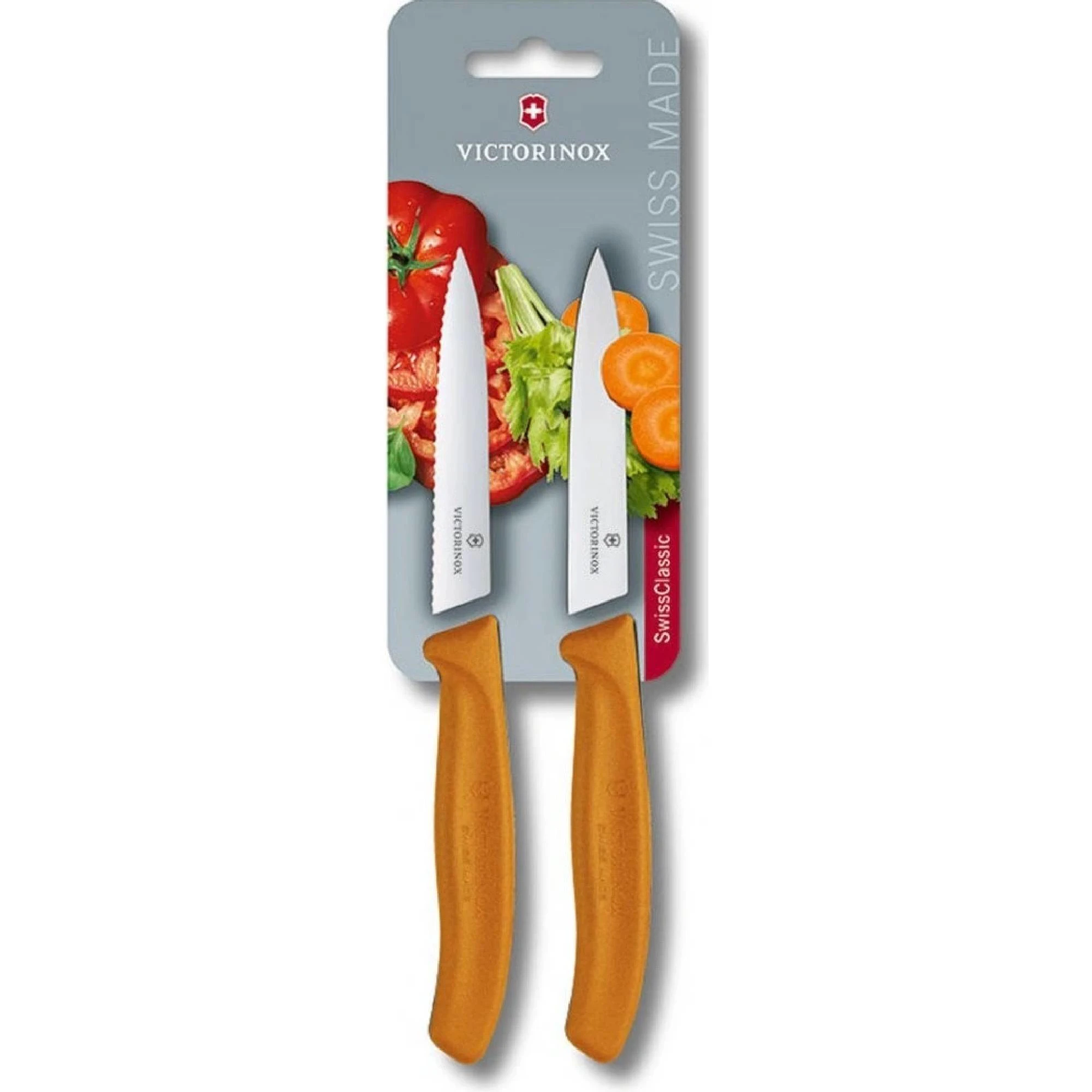 Praktická 2-dielna súprava kuchynských nožov Victorinox SwissClassic s odolnými rukoväťami z polypropylénu. Obsahuje jeden nôž s hladkým ostrím a jeden so zubkovaným ostrím, ideálne pre každodenné krájanie ovocia, zeleniny či pečiva.